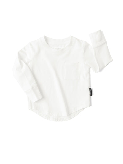Long Sleeve Pocket Tee - White