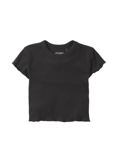 Ribbed Lettuce Trim Tee - Black