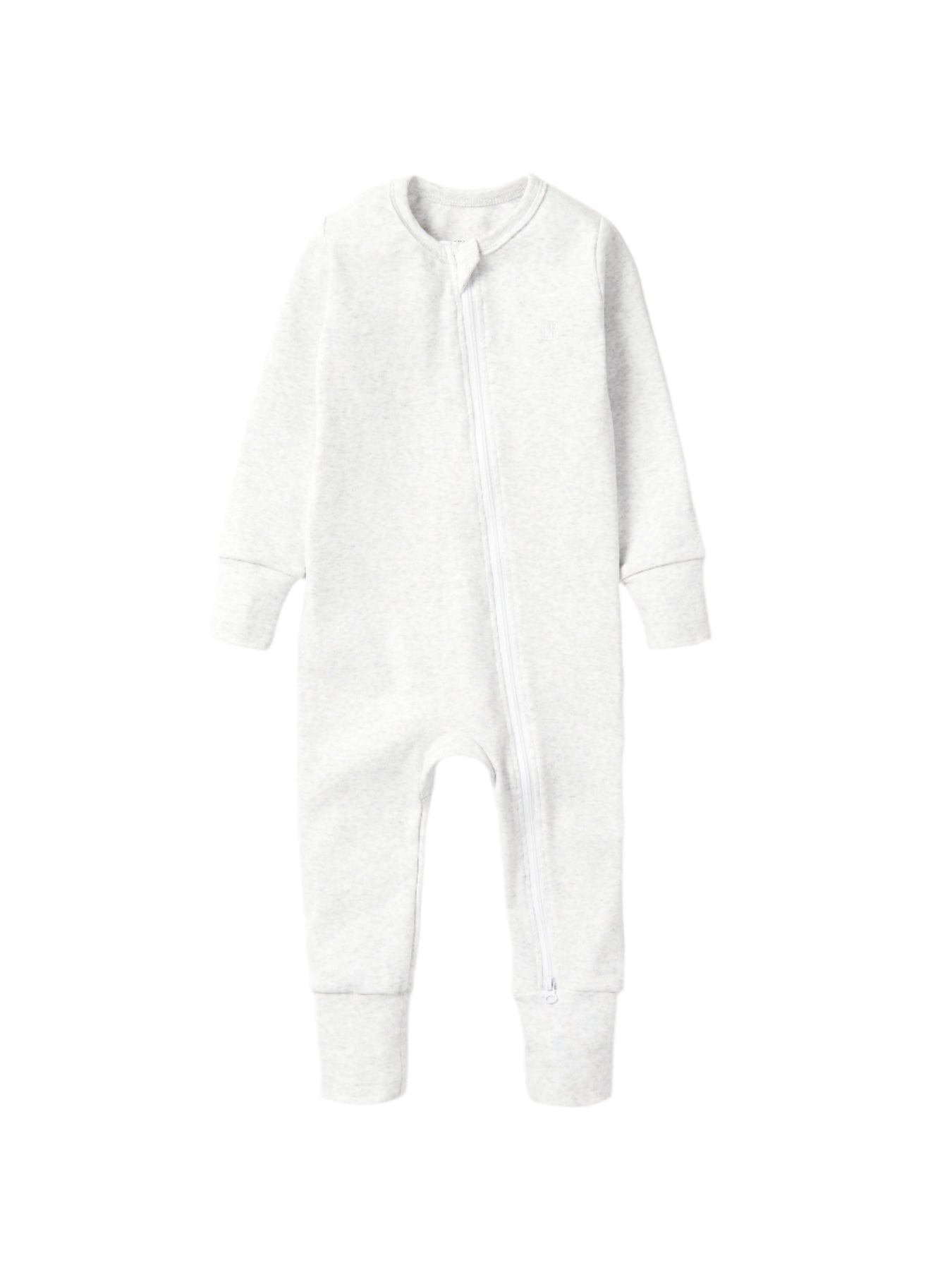 Our 2-Way Zip Romper is perfect for little ones on the go. The convenient two-way zipper makes diaper changes a breeze, while the soft fabric keeps your baby comfortable all day long. Available in Light Heather Grey and Chestnut.