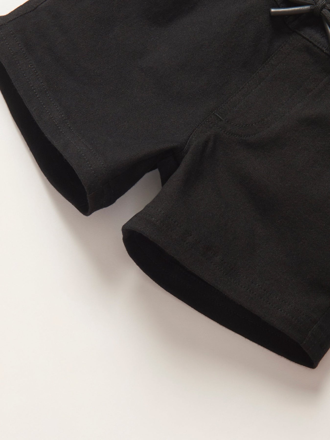 Keep your little one stylish and comfortable with our Black Cotton Twill Shorts. Crafted from soft, durable cotton twill, these shorts are perfect for active days filled with fun. Featuring a functional sewn-in drawstring and an elastic waistband, they offer a custom, secure fit that moves with them.