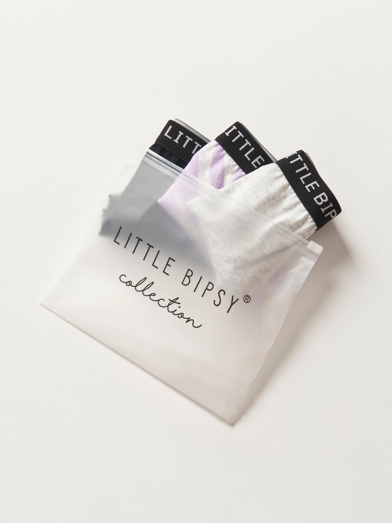 Introducing our first-ever Girls Boxer Brief Underwear in a vibrant Brush Stroke Mix of Black, Grey, and Purple! Designed for comfort and confidence, these boxer briefs feature a leakproof, absorbent front liner, keeping your little one dry and secure throughout the day. The elastic waistband, adorned with classic “Little Bipsy” branding, ensures a snug, comfortable fit that stays in place. Perfect for active girls who need reliable protection, these boxer briefs offer both style and peace of mind. A must-have addition to any girl’s underwear drawer!