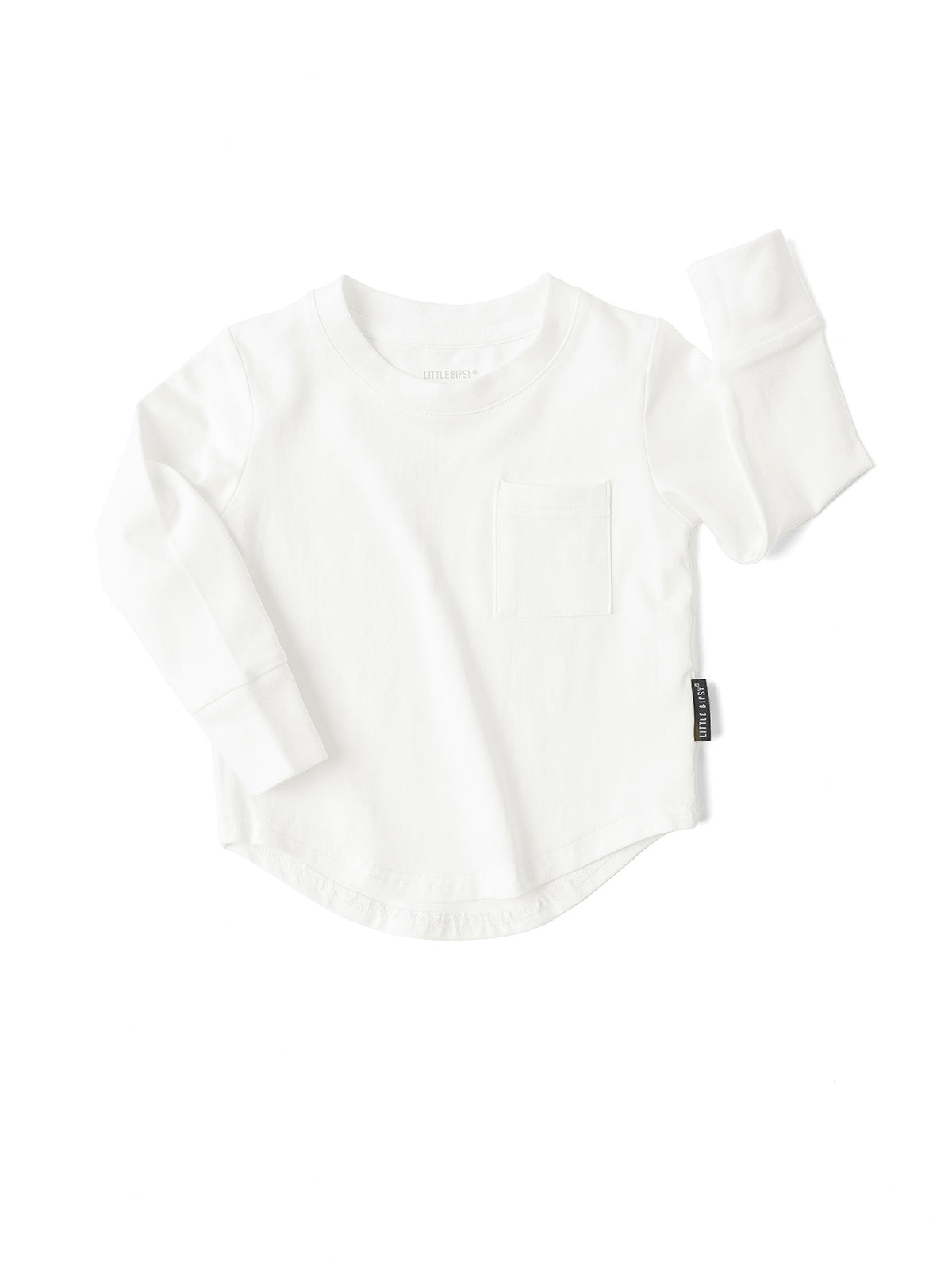 Building your little one’s capsule wardrobe? Our Long Sleeve Pocket Tee is the perfect staple. Versatile and comfortable, it’s ideal for layering in cooler months or wearing solo with shorts on breezy spring days. Finished with a front pocket, rollable cuffs, and a subtle high-low hem for effortless style.