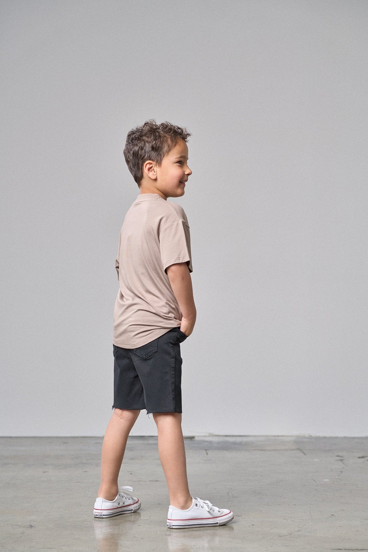 Soft like a cloud, cool like your little skater. This Mushroom-colored bamboo tee is made for movement, play, and all-day chill. The breathable, hypoallergenic fabric is gentle on sensitive skin, while the ribbed neckline and swooped high-low hem add just the right amount of skater flair. Finished with a printed care label (no itch!) and our signature embroidered ‘LB’ for that Little Bipsy stamp of style.