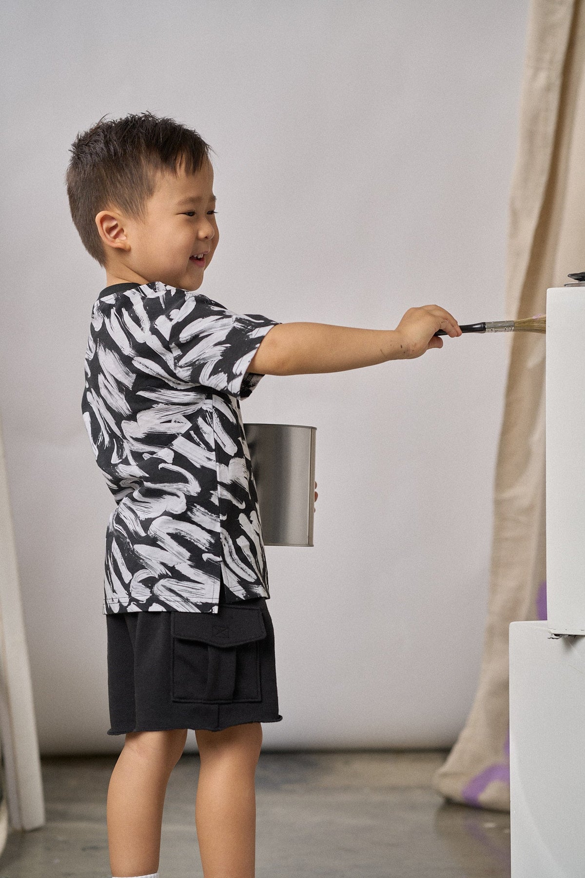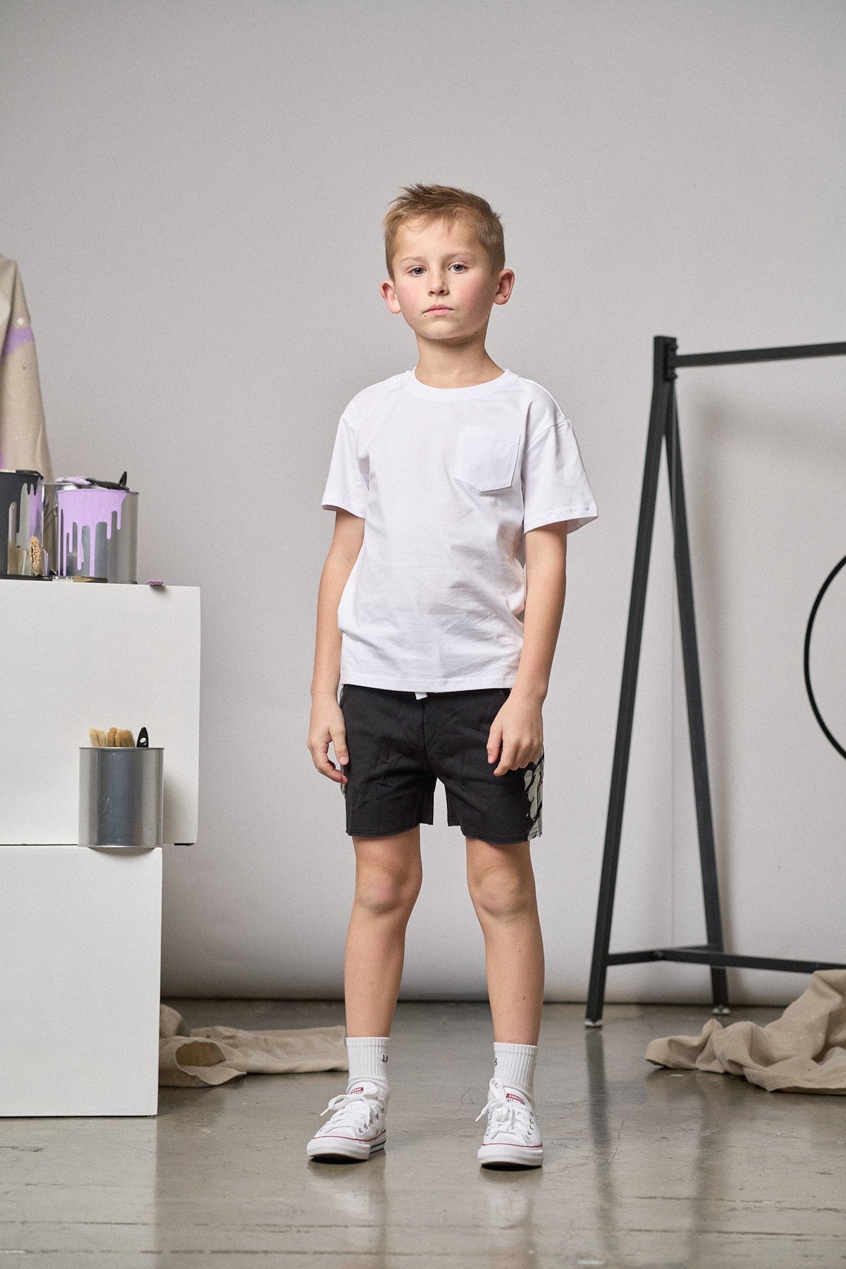 These Raw Edge Cargo Sweatshorts in Black are the perfect combination of comfort, style, and functionality. Crafted with a ribbed elastic waistband and a functional sewn-in drawstring, these shorts provide a secure and adjustable fit for active kids. The two side cargo pockets offer plenty of storage space for small essentials, while the fixed raw edge bottom hem adds a trendy, laid-back look. Perfect for casual days, outdoor play, or relaxed weekends, these shorts are a must-have for every little wardrobe.