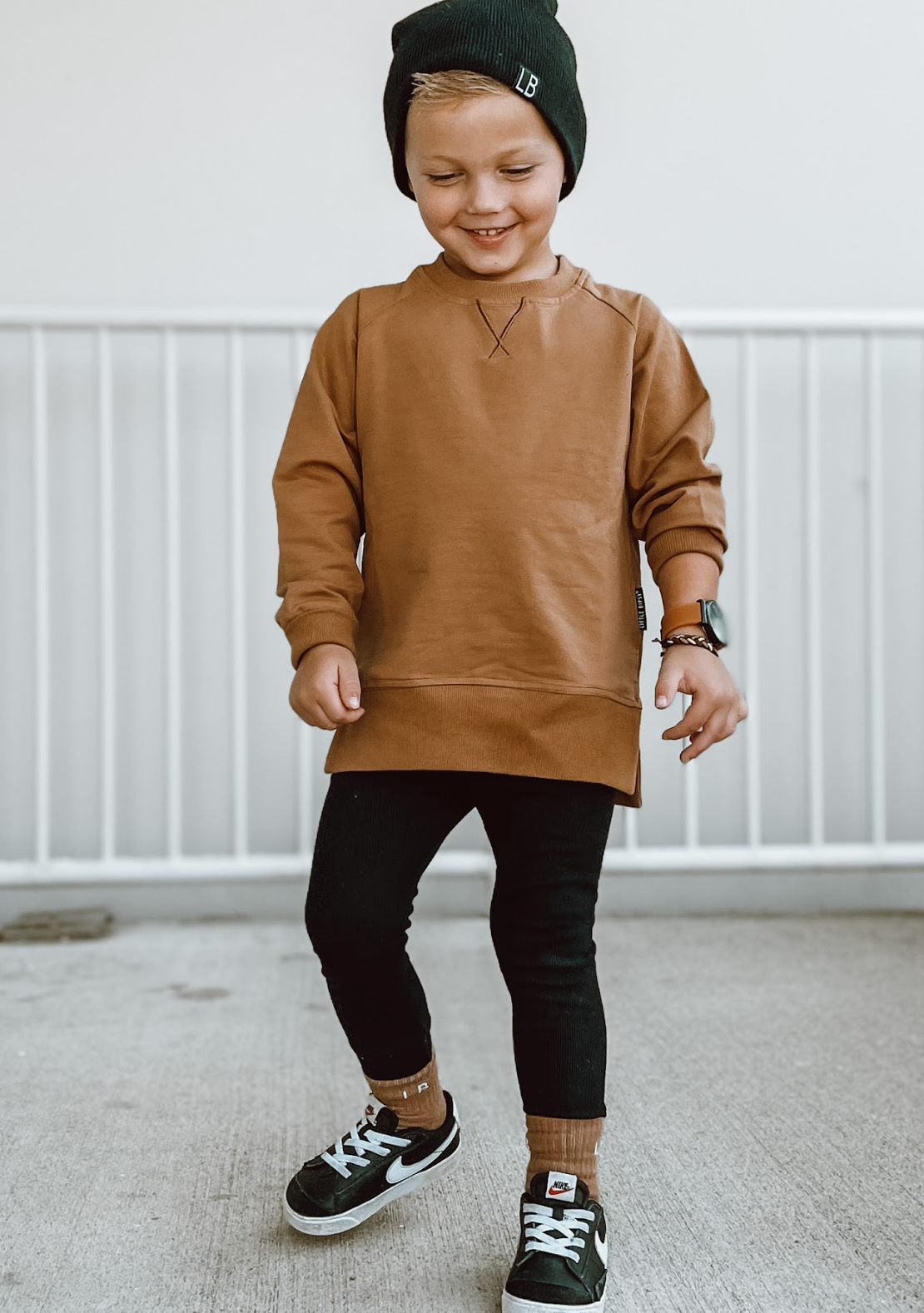 Our cozy Ribbed Leggings are a must-have staple for any little wardrobe. Soft, stretchy, and high-waisted for all-day comfort, they’re perfect for play, lounging, or layering. Pair with an Oversized Bamboo Tee or Pullover for an easy, on-the-go look.