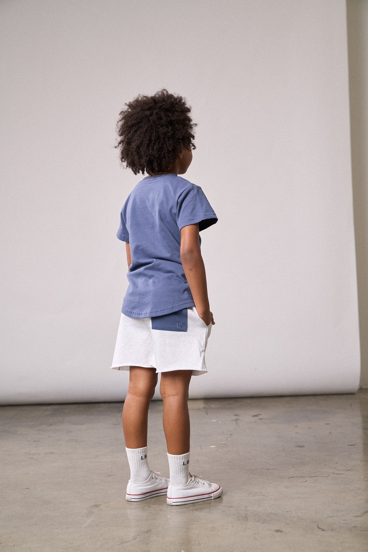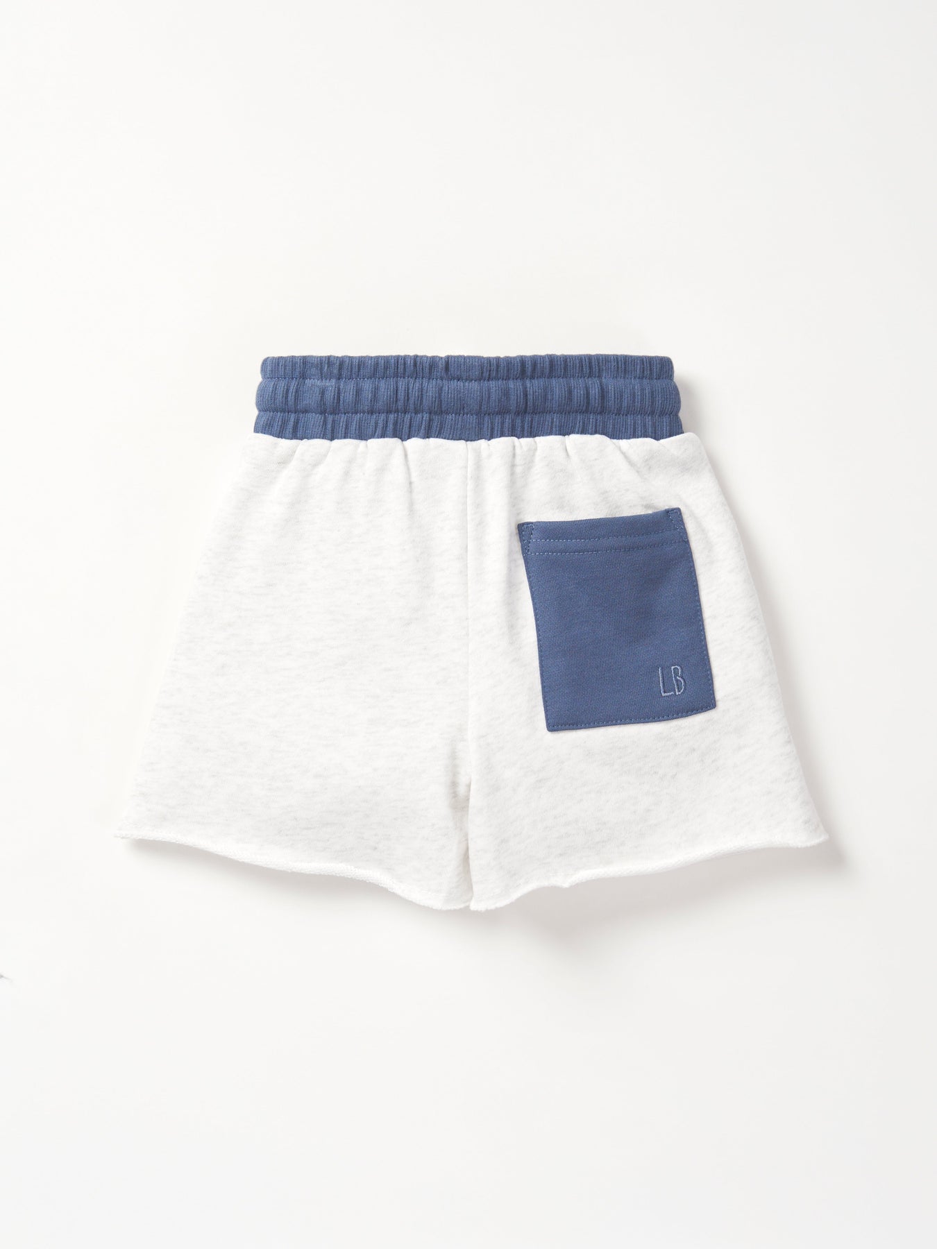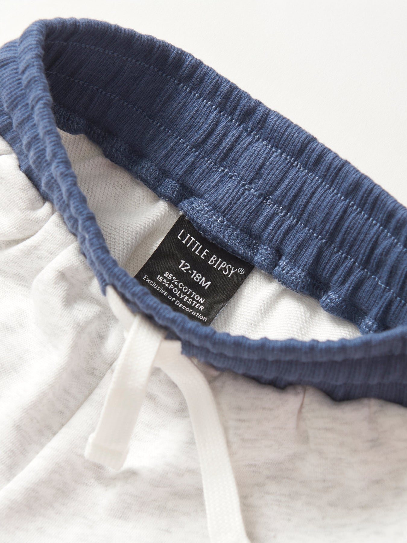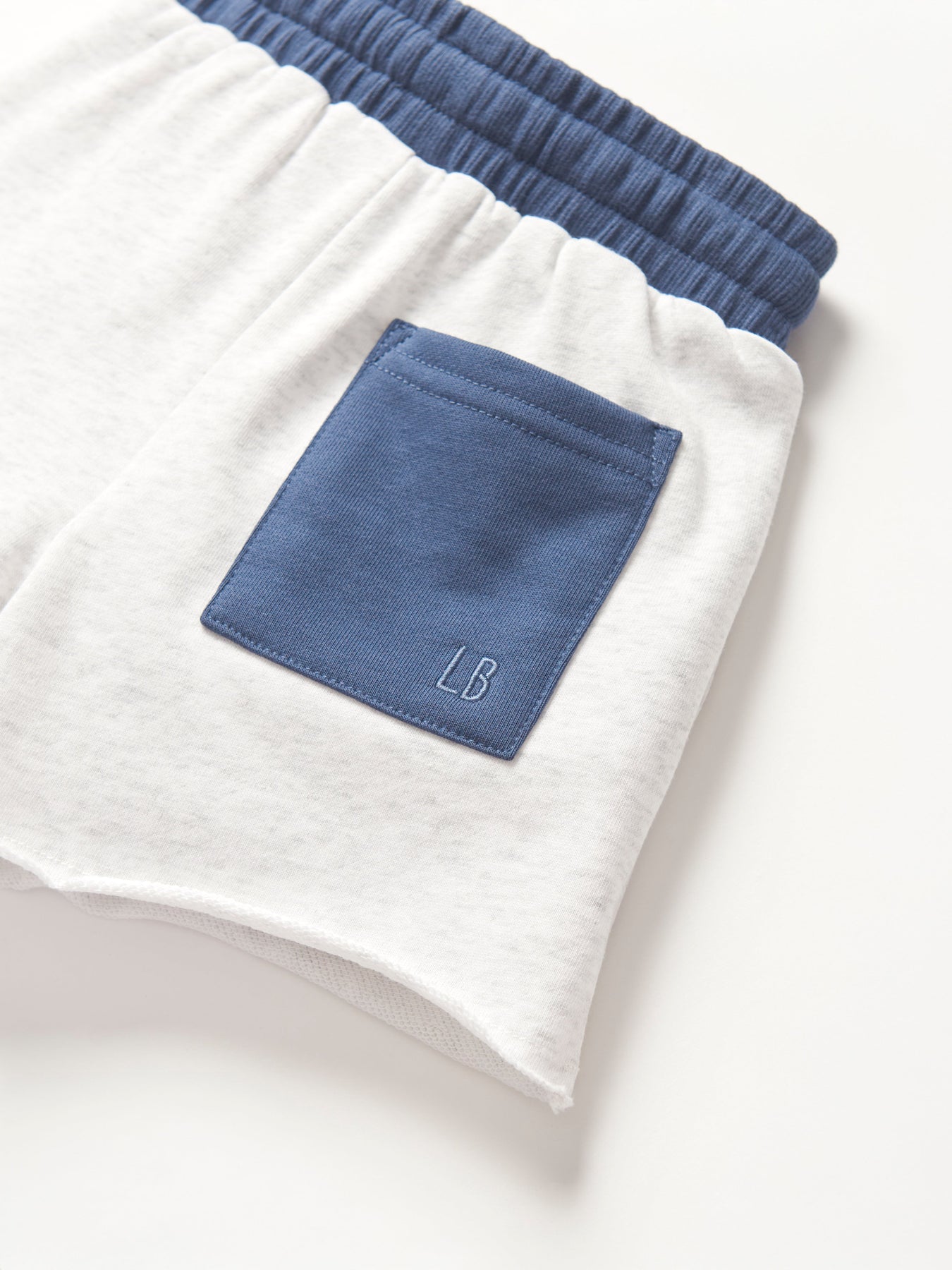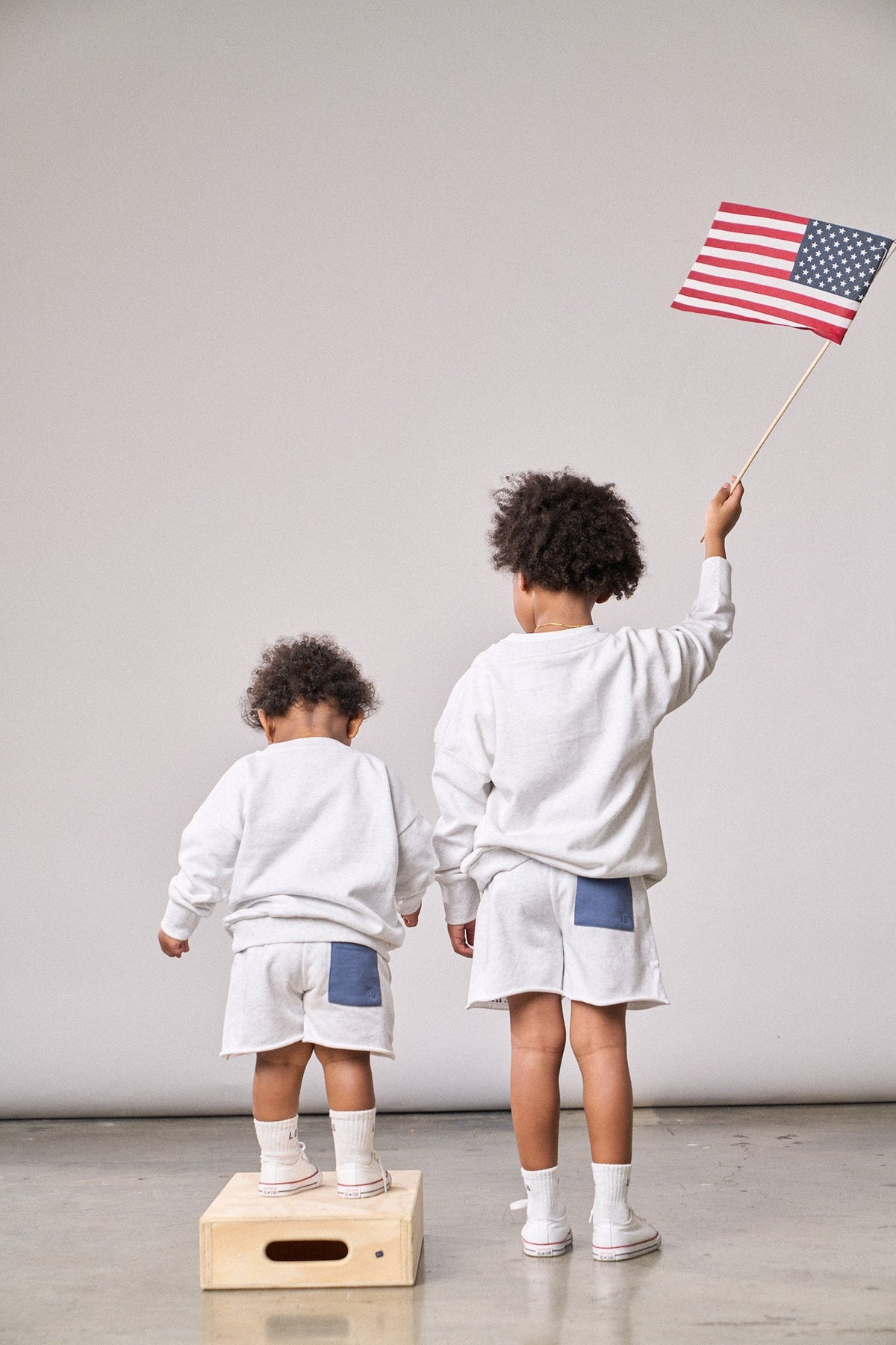 Stay comfy and stylish in these heather grey sweat shorts with a cool navy waistband! Featuring a rollable elastic waistband and a functional drawstring for the perfect fit, these shorts are all about comfort. With two front pockets, one back pocket, and an embroidered "USA" design, they're ready for any laid-back, patriotic day.
