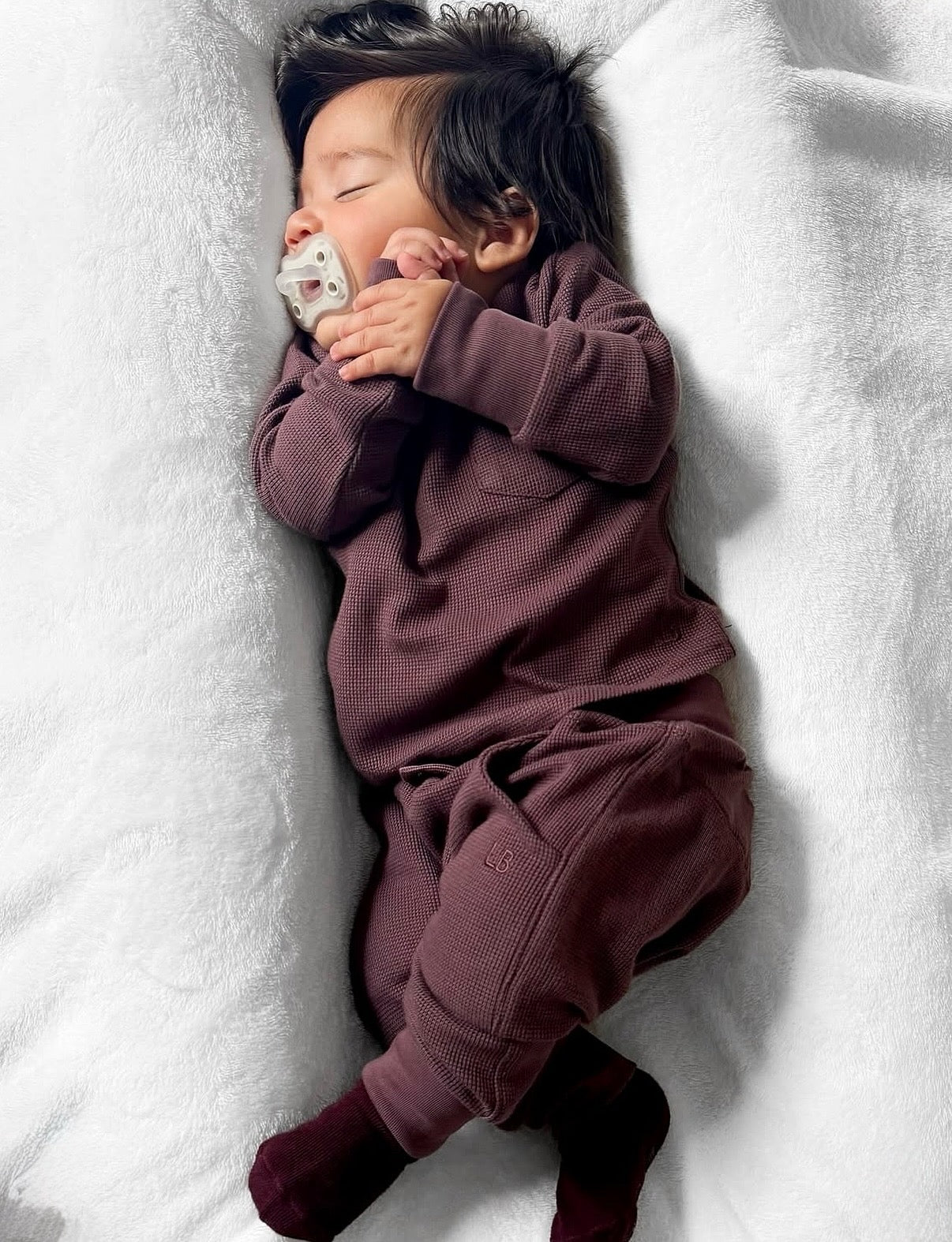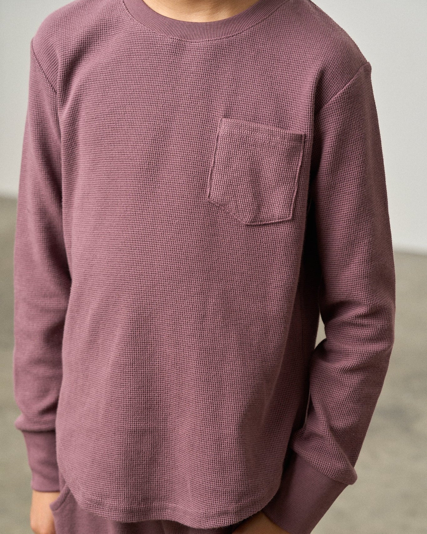 Our signature Waffle is back! Available in Shadow, Mushroom and Huckleberry, this cozy long-sleeve top offers the perfect balance of comfort and style. Crafted from soft, breathable fabric, it's designed to keep your little one cozy all season long. Available in sizes from 0-3M to 12Y, it’s a versatile staple for layering or wearing solo. Pair with our matching joggers for a complete look!