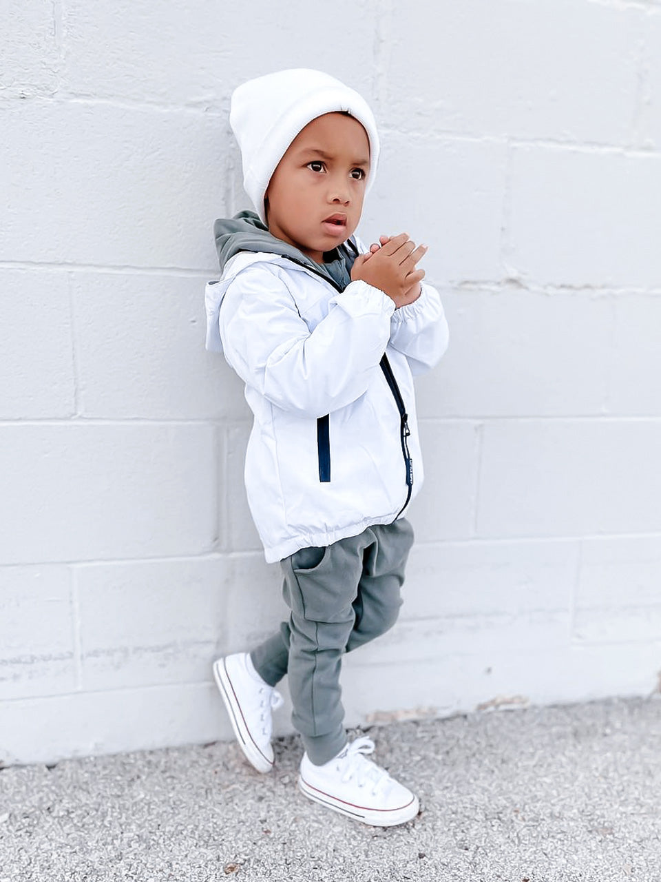Perfect for dewy morning walks and puddle jumping in the rain, our Windbreaker is a must-have for outdoor adventures. Lightweight and ultra-layerable, it features water-deflecting fabric, a full zip with chin protector, and a hood with a front flap for extra protection. Finished with functional zippered pockets and our signature “LB” details, it’s built for comfort, movement, and play.